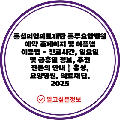 홍성의암의료재단 홍주요양병원 예약 홈페이지 및 어플앱 이용법 – 진료시간, 일요일 및 공휴일 정보, 추천 전문의 안내 | 홍성, 요양병원, 의료재단, 2025