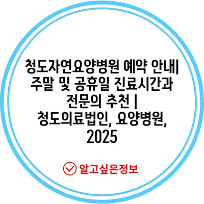 청도자연요양병원 예약 안내| 주말 및 공휴일 진료시간과 전문의 추천 | 청도의료법인, 요양병원, 2025