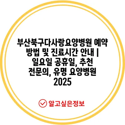 부산북구다사랑요양병원 예약 방법 및 진료시간 안내 | 일요일 공휴일, 추천 전문의, 유명 요양병원 2025