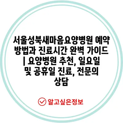 서울성북새마음요양병원 예약 방법과 진료시간 완벽 가이드 | 요양병원 추천, 일요일 및 공휴일 진료, 전문의 상담