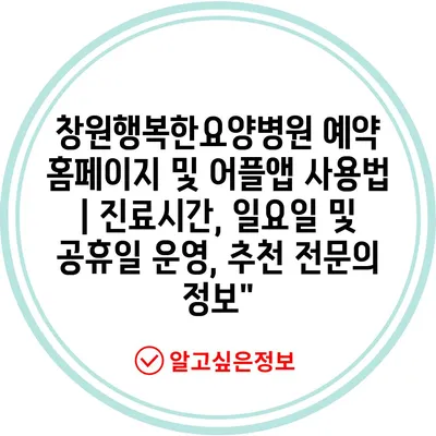 창원행복한요양병원 예약 홈페이지 및 어플앱 사용법 | 진료시간, 일요일 및 공휴일 운영, 추천 전문의 정보”