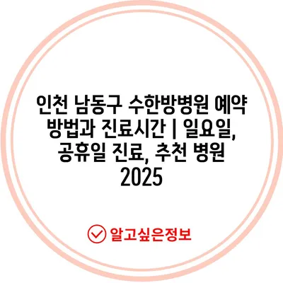 인천 남동구 수한방병원 예약 방법과 진료시간 | 일요일, 공휴일 진료, 추천 병원 2025