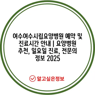 여수여수시립요양병원 예약 및 진료시간 안내 | 요양병원 추천, 일요일 진료, 전문의 정보 2025