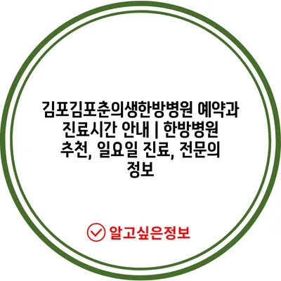 김포김포춘의생한방병원 예약과 진료시간 안내 | 한방병원 추천, 일요일 진료, 전문의 정보