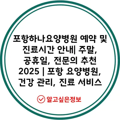 포항하나요양병원 예약 및 진료시간 안내| 주말, 공휴일, 전문의 추천 2025 | 포항 요양병원, 건강 관리, 진료 서비스