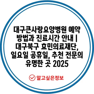 대구큰사랑요양병원 예약 방법과 진료시간 안내 | 대구북구 효민의료재단, 일요일 공휴일, 추천 전문의 유명한 곳 2025