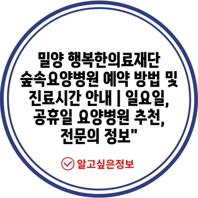 밀양 행복한의료재단 숲속요양병원 예약 방법 및 진료시간 안내 | 일요일, 공휴일 요양병원 추천, 전문의 정보”