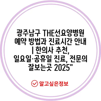 광주남구 THE선요양병원 예약 방법과 진료시간 안내 | 한의사 추천, 일요일·공휴일 진료, 전문의 잘보는곳 2025″