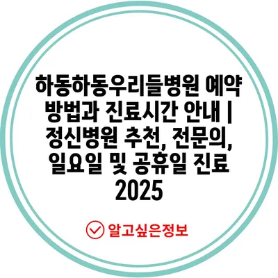 하동하동우리들병원 예약 방법과 진료시간 안내 | 정신병원 추천, 전문의, 일요일 및 공휴일 진료 2025