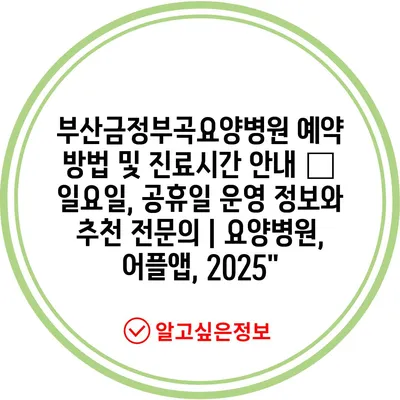부산금정부곡요양병원 예약 방법 및 진료시간 안내 – 일요일, 공휴일 운영 정보와 추천 전문의 | 요양병원, 어플앱, 2025″