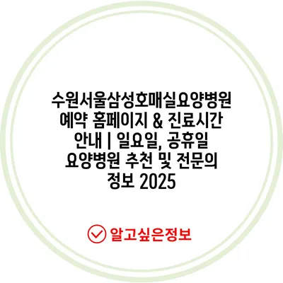 수원서울삼성호매실요양병원 예약 홈페이지 & 진료시간 안내 | 일요일, 공휴일 요양병원 추천 및 전문의 정보 2025