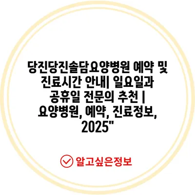 당진당진솔담요양병원 예약 및 진료시간 안내| 일요일과 공휴일 전문의 추천 | 요양병원, 예약, 진료정보, 2025″