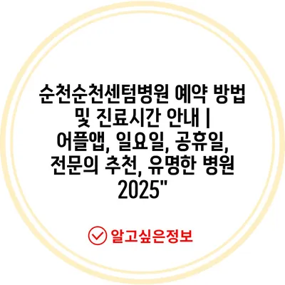 순천순천센텀병원 예약 방법 및 진료시간 안내 | 어플앱, 일요일, 공휴일, 전문의 추천, 유명한 병원 2025″