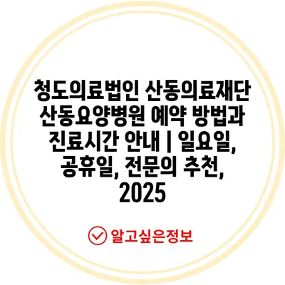 청도의료법인 산동의료재단 산동요양병원 예약 방법과 진료시간 안내 | 일요일, 공휴일, 전문의 추천, 2025