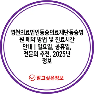 영천의료법인동승의료재단동승병원 예약 방법 및 진료시간 안내 | 일요일, 공휴일, 전문의 추천, 2025년 정보