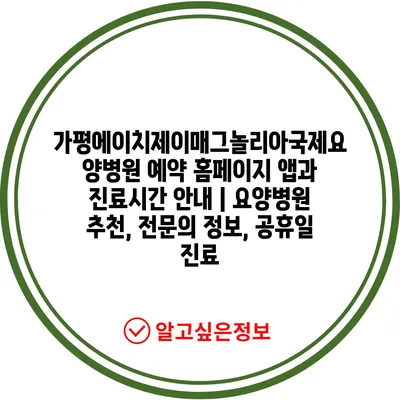 가평에이치제이매그놀리아국제요양병원 예약 홈페이지 앱과 진료시간 안내 | 요양병원 추천, 전문의 정보, 공휴일 진료