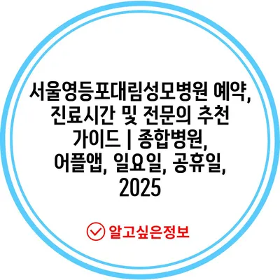 서울영등포대림성모병원 예약, 진료시간 및 전문의 추천 가이드 | 종합병원, 어플앱, 일요일, 공휴일, 2025