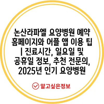 서울영등포대림성모병원 예약, 진료시간 및 전문의 추천 가이드 | 종합병원, 어플앱, 일요일, 공휴일, 2025에 대해 알아보겠습니다. 서울영등포대림성모병원은 편리한 예약 시스템과 다양한 진료 과목으로 많은 환자들에게 사랑받고 있습니다. 예약은 병원 홈페이지나 전화를 통해 간편하게 할 수 있으며, 특히 의료 어플리케이션을 통해서도 손쉽게 진행할 수 있습니다. 병원의 진료시간은 일반적으로 오전 9시부터 오후 6시까지이며, 일요일 및 공휴일에는 휴무입니다. 그러나 … Read more