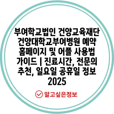 부여학교법인 건양교육재단 건양대학교부여병원 예약 홈페이지 및 어플 사용법 가이드 | 진료시간, 전문의 추천, 일요일 공휴일 정보 2025