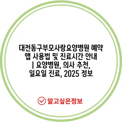대전동구부모사랑요양병원 예약 앱 사용법 및 진료시간 안내 | 요양병원, 의사 추천, 일요일 진료, 2025 정보