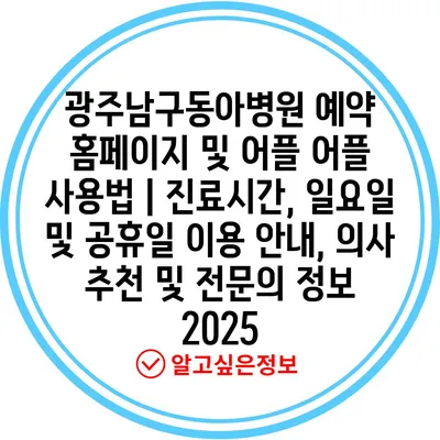 광주남구동아병원 예약 홈페이지 및 어플 어플 사용법 | 진료시간, 일요일 및 공휴일 이용 안내, 의사 추천 및 전문의 정보 2025
