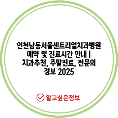 인천남동서울센트리얼치과병원 예약 및 진료시간 안내 | 치과추천, 주말진료, 전문의 정보 2025