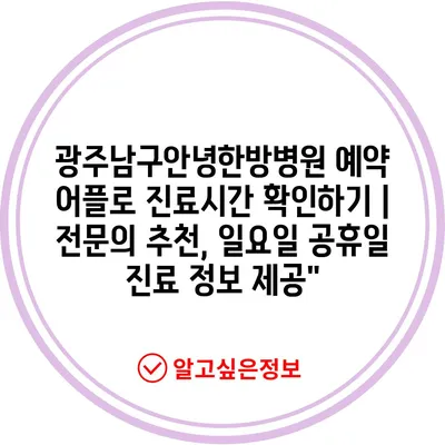 광주남구안녕한방병원 예약 어플로 진료시간 확인하기 | 전문의 추천, 일요일 공휴일 진료 정보 제공”