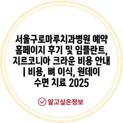 서울구로마루치과병원 예약 홈페이지 후기 및 임플란트, 지르코니아 크라운 비용 안내 | 비용, 뼈 이식, 원데이 수면 치료 2025