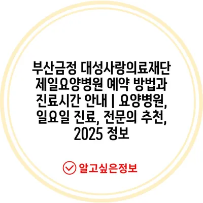 부산금정 대성사랑의료재단 제일요양병원 예약 방법과 진료시간 안내 | 요양병원, 일요일 진료, 전문의 추천, 2025 정보