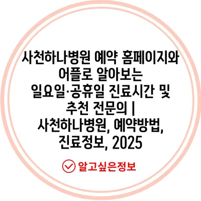 사천하나병원 예약 홈페이지와 어플로 알아보는 일요일·공휴일 진료시간 및 추천 전문의 | 사천하나병원, 예약방법, 진료정보, 2025