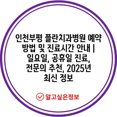 인천부평 플란치과병원 예약 방법 및 진료시간 안내 | 일요일, 공휴일 진료, 전문의 추천, 2025년 최신 정보