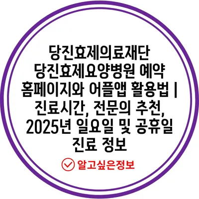 당진효제의료재단 당진효제요양병원 예약 홈페이지와 어플앱 활용법 | 진료시간, 전문의 추천, 2025년 일요일 및 공휴일 진료 정보