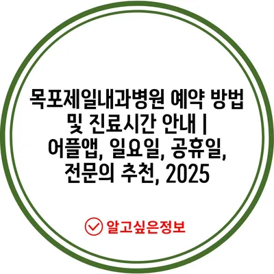 목포제일내과병원 예약 방법 및 진료시간 안내 | 어플앱, 일요일, 공휴일, 전문의 추천, 2025