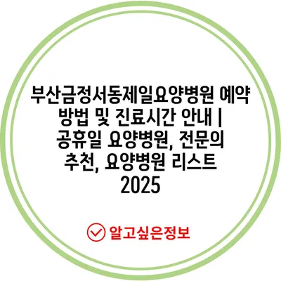 부산금정서동제일요양병원 예약 방법 및 진료시간 안내 | 공휴일 요양병원, 전문의 추천, 요양병원 리스트 2025