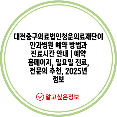 대전중구의료법인청운의료재단이안과병원 예약 방법과 진료시간 안내 | 예약 홈페이지, 일요일 진료, 전문의 추천, 2025년 정보