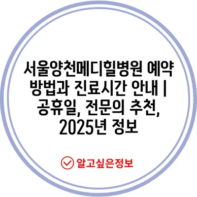 서울양천메디힐병원 예약 방법과 진료시간 안내 | 공휴일, 전문의 추천, 2025년 정보