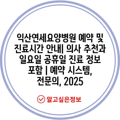 익산연세요양병원 예약 및 진료시간 안내| 의사 추천과 일요일 공휴일 진료 정보 포함 | 예약 시스템, 전문의, 2025