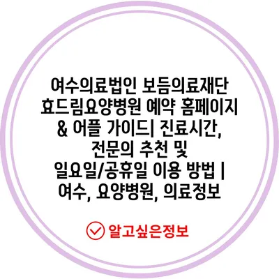 여수의료법인 보듬의료재단 효드림요양병원 예약 홈페이지 & 어플 가이드| 진료시간, 전문의 추천 및 일요일/공휴일 이용 방법 | 여수, 요양병원, 의료정보