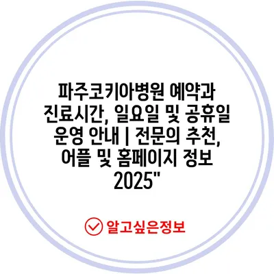 파주코키아병원 예약과 진료시간, 일요일 및 공휴일 운영 안내 | 전문의 추천, 어플 및 홈페이지 정보 2025″