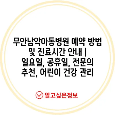 무안남악아동병원 예약 방법 및 진료시간 안내 | 일요일, 공휴일, 전문의 추천, 어린이 건강 관리