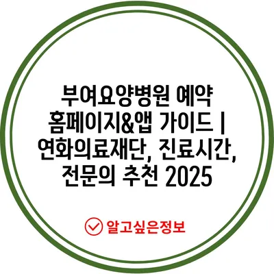 부여요양병원 예약 홈페이지&앱 가이드 | 연화의료재단, 진료시간, 전문의 추천 2025