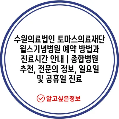 수원의료법인 토마스의료재단 윌스기념병원 예약 방법과 진료시간 안내 | 종합병원 추천, 전문의 정보, 일요일 및 공휴일 진료
