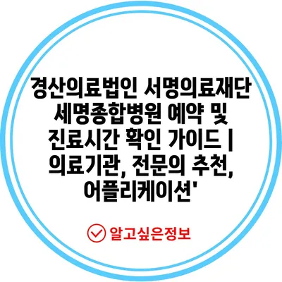 경산의료법인 서명의료재단 세명종합병원 예약 및 진료시간 확인 가이드 | 의료기관, 전문의 추천, 어플리케이션’