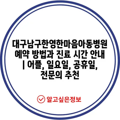 대구남구한영한마음아동병원 예약 방법과 진료 시간 안내 | 어플, 일요일, 공휴일, 전문의 추천