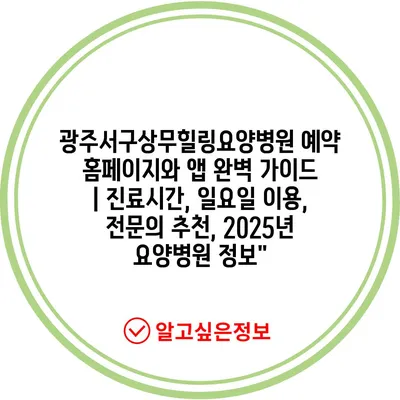 광주서구상무힐링요양병원 예약 홈페이지와 앱 완벽 가이드 | 진료시간, 일요일 이용, 전문의 추천, 2025년 요양병원 정보”
