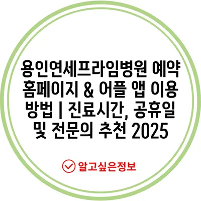 용인연세프라임병원 예약 홈페이지 & 어플 앱 이용 방법 | 진료시간, 공휴일 및 전문의 추천 2025