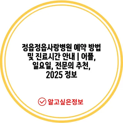 정읍정읍사랑병원 예약 방법 및 진료시간 안내 | 어플, 일요일, 전문의 추천, 2025 정보