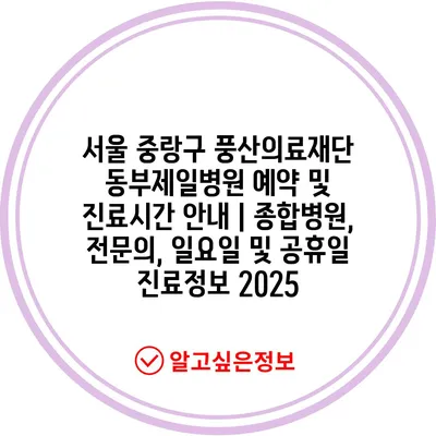 서울 중랑구 풍산의료재단 동부제일병원 예약 및 진료시간 안내 | 종합병원, 전문의, 일요일 및 공휴일 진료정보 2025