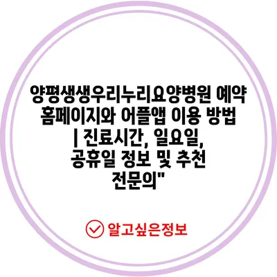 양평생생우리누리요양병원 예약 홈페이지와 어플앱 이용 방법 | 진료시간, 일요일, 공휴일 정보 및 추천 전문의”
