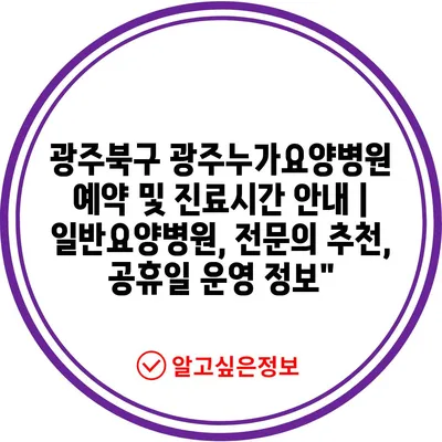 광주북구 광주누가요양병원 예약 및 진료시간 안내 | 일반요양병원, 전문의 추천, 공휴일 운영 정보”